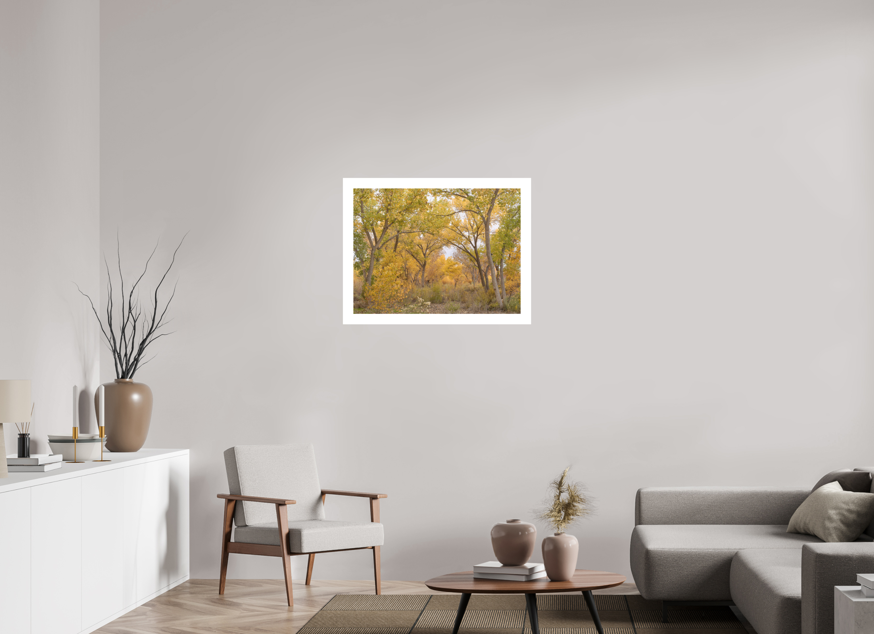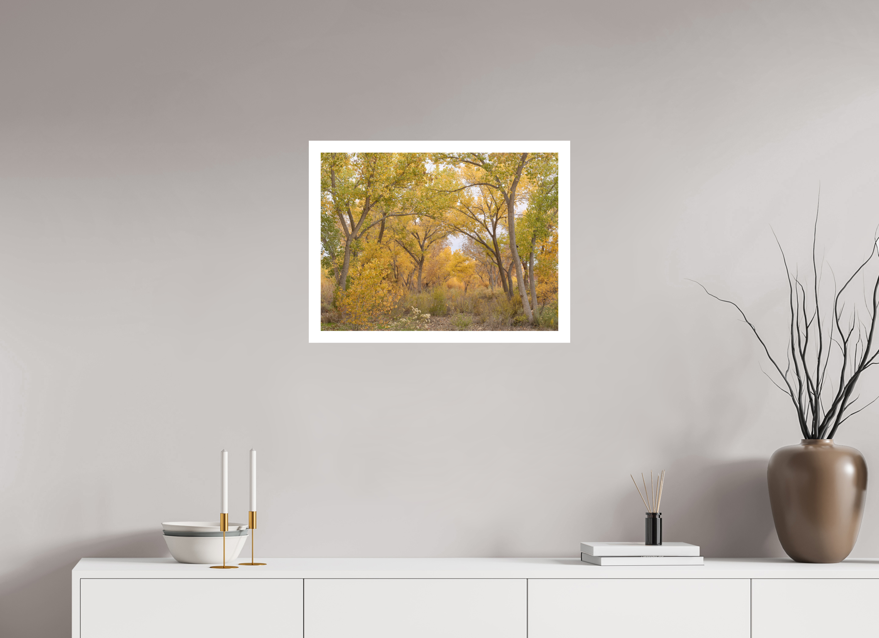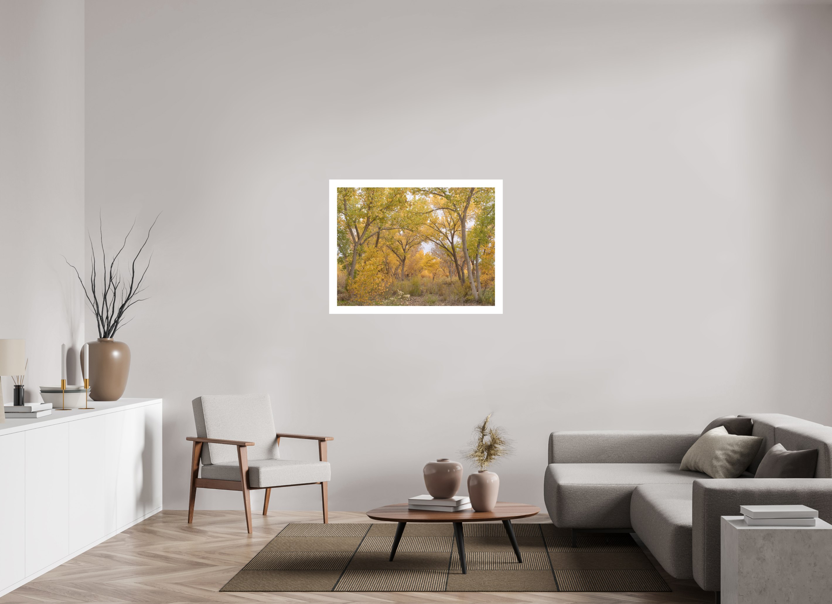 Am San Juan River bei Bluff erheben sich im Herbst die Cottonwoods wie Säulen einer Kathedrale. Ihre gelben Blätter tauchen die Szene in ein warmes, goldenes Licht. Die Aufnahme feiert die stille Schönheit des Übergangs der Jahreszeiten und verwandelt den Wald in einen festlichen Raum aus Natur und Farbe. Als Fine Art Print bringt diese Fotografie einen Hauch von Herbstpracht in die Wandgestaltung.